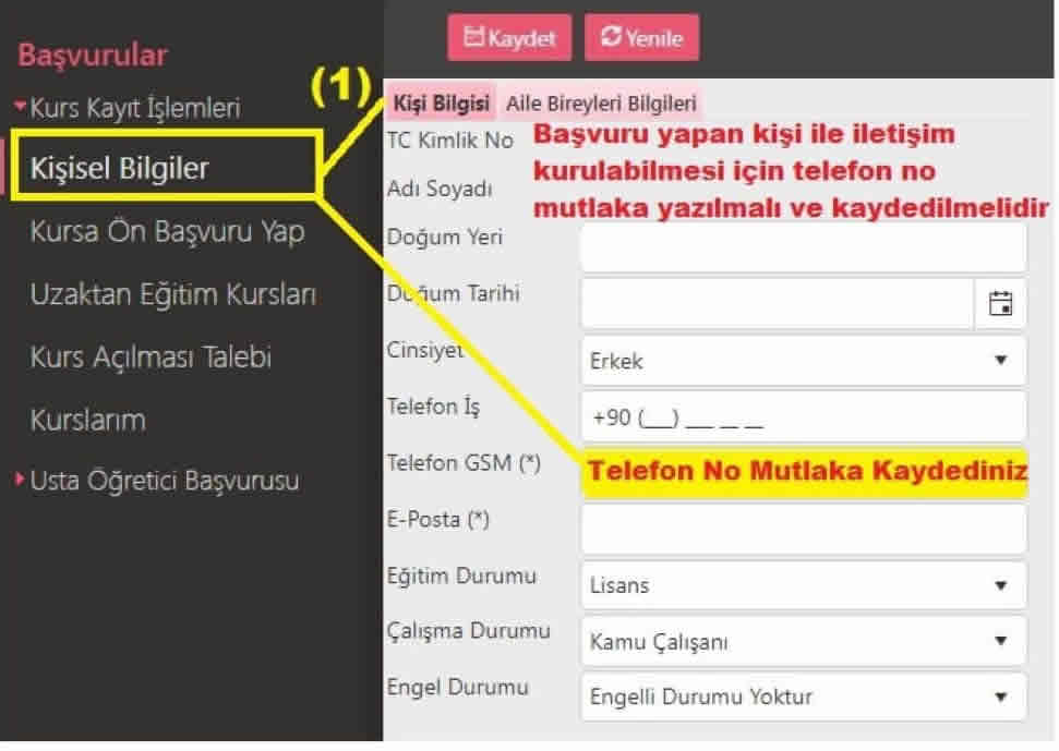 Kursiyer başvuruları e-yaygın (e-devlet) üzerinden alınmaktadır.